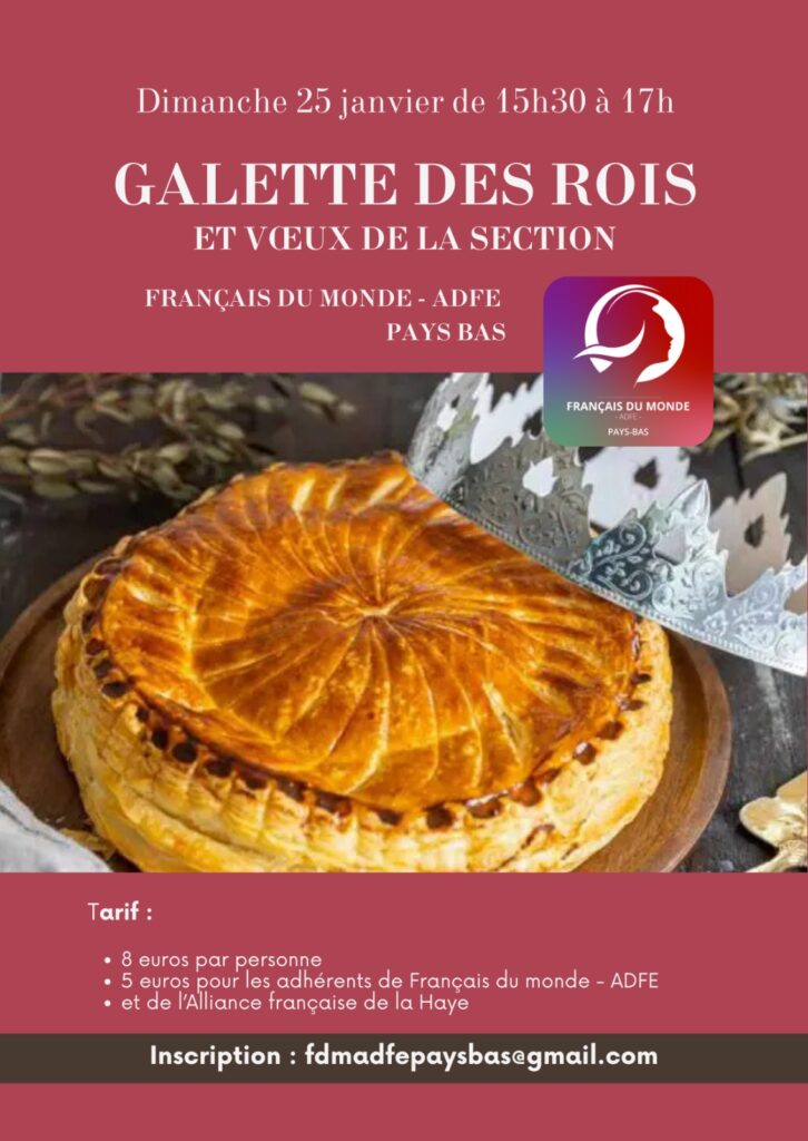 Vous êtes chaleureusement conviés à la traditionnelle Galette des rois organisée par la section Français du monde adfe Pays-Bas pour petits et grands, servie avec du cidre breton et de jus de fruits .