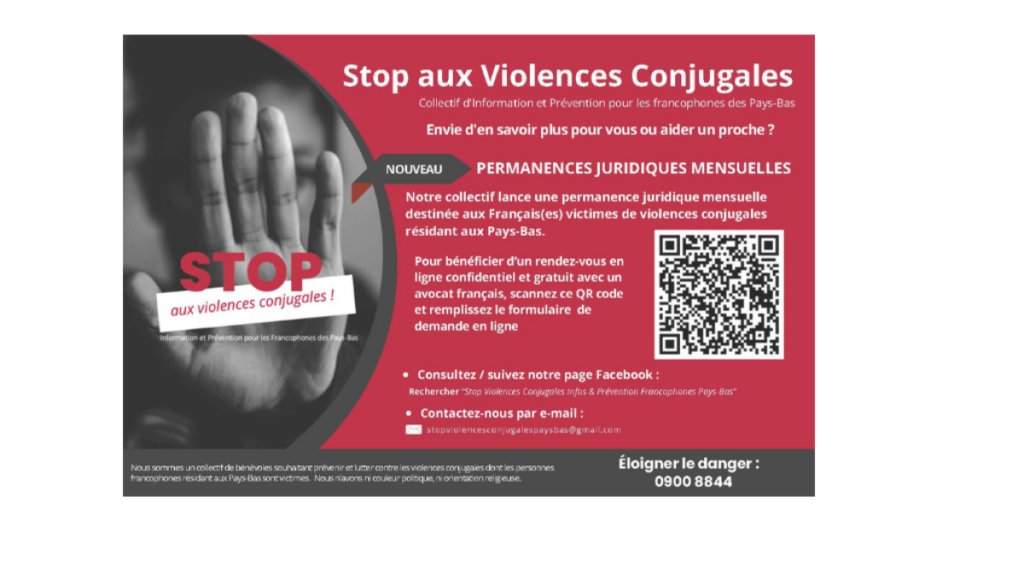 📞 Collectif « Stop aux Violences Conjugales » : permanence juridique mensuelle pour un accompagnement personnalisé.