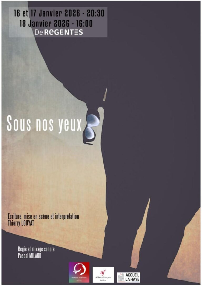 Comédien et metteur en scène depuis de nombreuses années, je souhaite depuis longtemps, risquer le seul en scène, tant en termes d’écriture que de jeu. Cette tentation persistante a fait naître ce «solo», dirait on en musique, dont le titre « Sous nos yeux », évoque cette infinité de petites et grandes choses qui apparaissent ou passent devant nous, au cours d’une vie…
