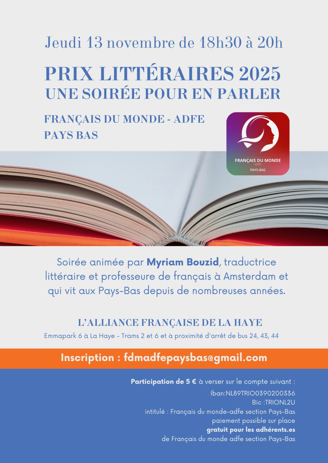 Prix littéraires 2025: Une soirée pour en parler Jeudi 13 novembre de 18h30 à 20h dans les locaux de l’Alliance française